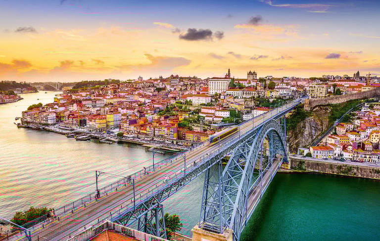 Charming and colorful, Porto sits along the Douro River with its famous bridges and tiled houses. Wander the historic Ribeira district, taste world-renowned port wine in Gaia, and enjoy stunning views from the city’s many lookout points.